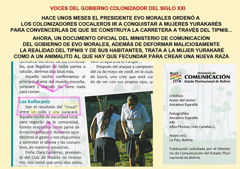 ESCRÍBENOS, APOYA A LA SUBCENTRAL TIPNIS Y A LOS HERMANOS MOXEÑOS, YURAKARÉS Y CHIMANES... PARTICIPA CON FOTOS, DIBUJOS, TEXTOS, INVESTIGACIONES... ¡¡¡Todo será bienvenido!!! ¡FORMA PARTE DE ESTA CAMPAÑA EN DEFENSA DE LA VIDA! CONTACTOS: [email protected]